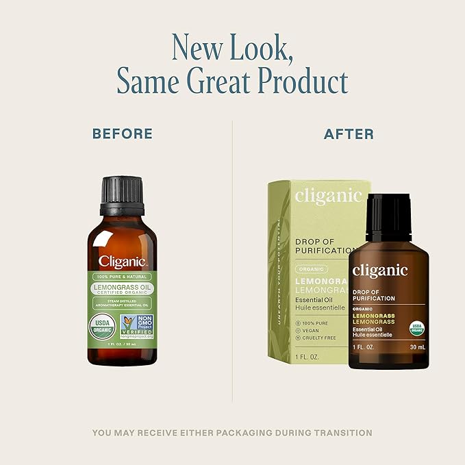 Cliganic Organic Lemongrass Essential Oil, 1oz - 100% Pure Natural Undiluted, for Aromatherapy Diffuser | Non-GMO Verified (Packaging May Vary)