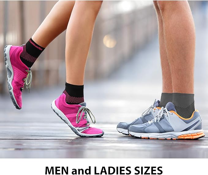 - Measure both your shoe size and ankle circumference: Refer to size chart; available in four sizes; Small, Medium, Large, XLarge; unisex design for men and women; quarter-length socks made of 80% durable nylon and 20% spandex; one pair