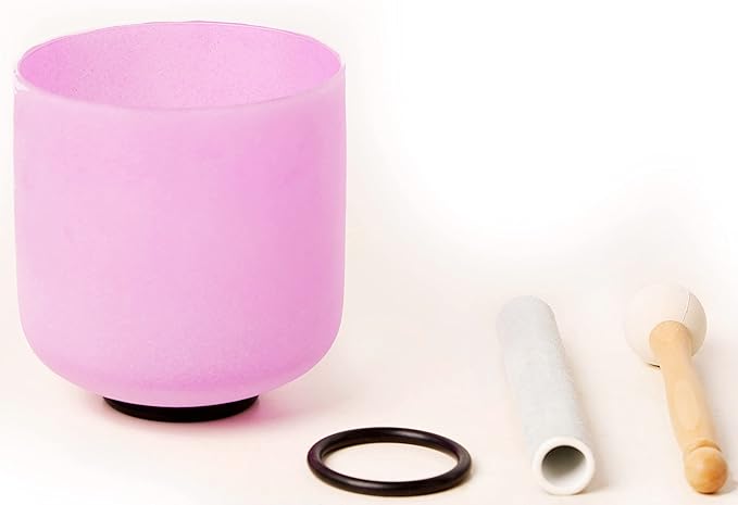 - Package includes: 1 * 6 inch wide violet high quality crystal singing bowl, 1 * thick cowhide suede striker, 1 * rubber mallet, 1 * one O-ring