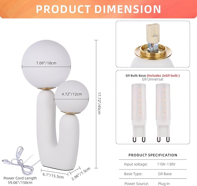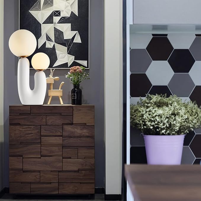 - Nordic Design For Home: White frosted glass bulb lamp shade, fashionable and exquisite, resin lamp body, fashionable shape, strong and stable. These simple and elegant table lamps are really perfect to decorate anywhere of your house.