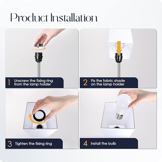 - Minimalist Design: The nightstand lamp features a chrome base and a white fabric shade that diffuses the light to protect the eyes of you and your family members. Emitting comfortable and even lighting, this bedside lamp creates a relaxing atmosphere in your home