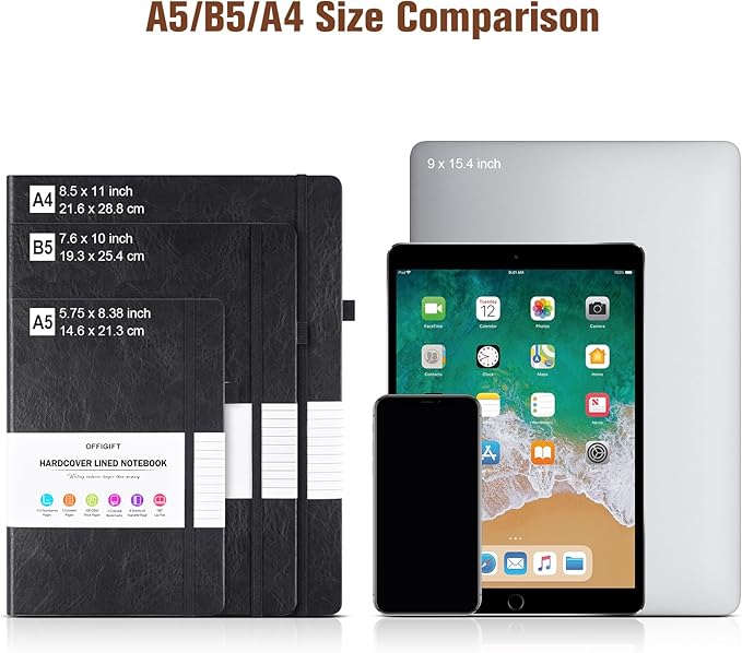 - 【WIDE USAGE& GIFTABLE】OFFIGIFT thick hardcover notebook is ideal for office, school and home use, and is a great gift choice for women, men, business executives, college, students, adults, scientists, and people in many other fields. It can be used as personal writing journal, daily journal, to do list notebook, business notebooks, college/school course notebooks, note taking journal and more.