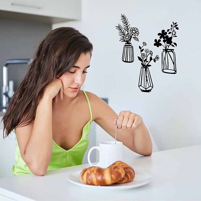 - 【 UNIQUE DESIGN ART】These package includes 3 pieces of black metal vase flowers wall decor. These black wall art decors which will add a rustic farmhouse style.