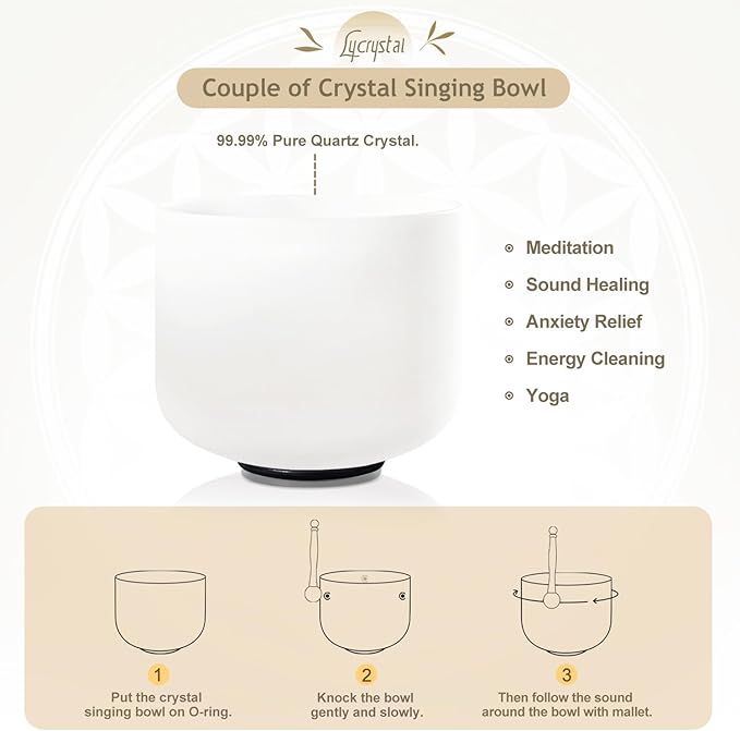 - After Sale:Lycrystal is committed to bringing you a perfect shopping experience. The crytal singing bowl is fragile, but we promise that if it is damaged during transportation, we will replace it for you