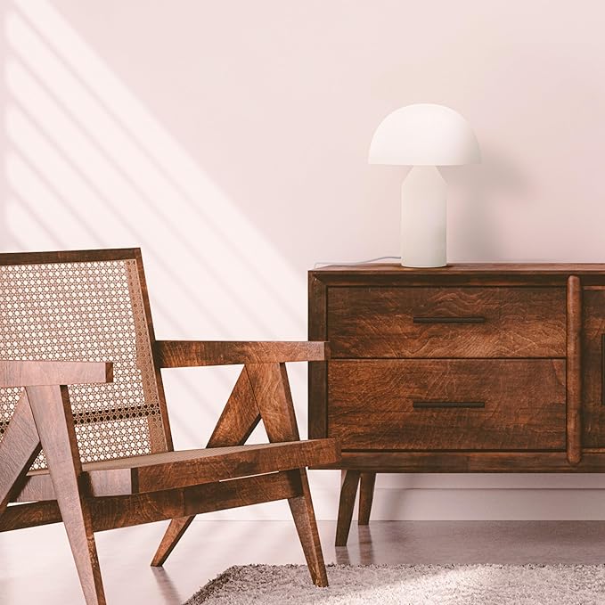 - Contemporary Elegance: The Brightech Venus glass table lamp features a captivating 9.5” glass globe shade, effortlessly complementing various decor themes from industrial to mid-century modern. Its mushroom-like design coupled with its smooth glass finish exudes sophistication, making a lasting impression on guests and enhances light diffusion, creating an inviting ambiance in any space. Functional and stylish, this lamp offers ambient lighting that elevates your decor.