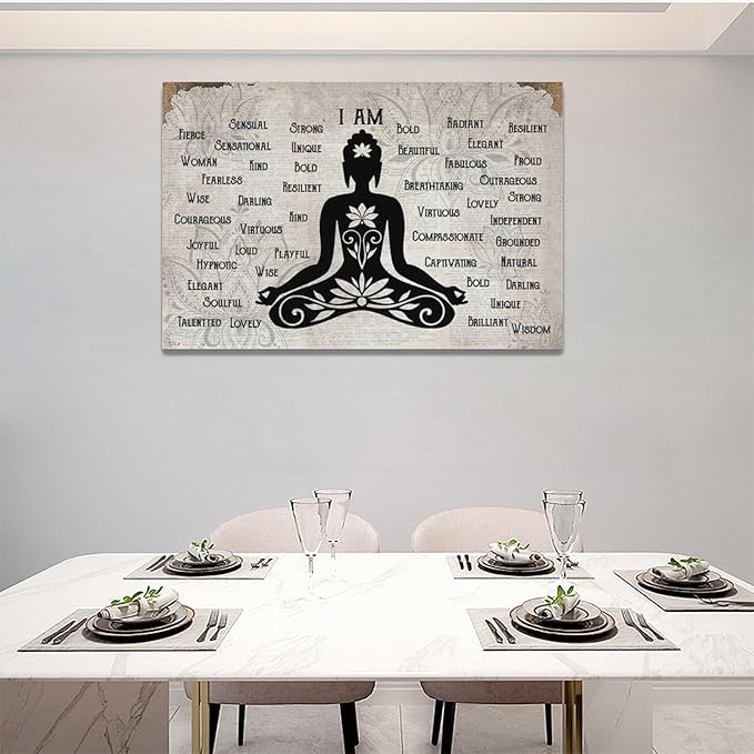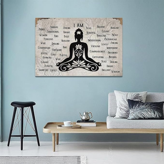 Zen Buddhism Canvas Wall Art Lotus Buddha Pictures Decor Canvas Motivational Painting Prints Wall Decor Framed Buddhist Artwork Gifts for Home Living Room Bedroom 24"x16"
