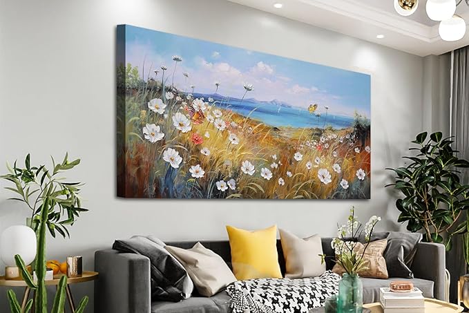 - Landscape florals wall art: Large 40"x20" (100cmx50cm) modern flowers painting decoration for living room, bedroom, bathroom, guest room, dining room, over fireplace, kitchen, mens room, home, office, master bedroom, porch, waiting room, bar, hotel etc.
