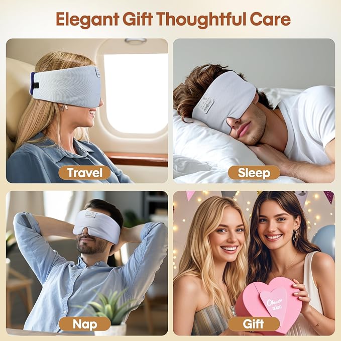 - Ultimate Light-Blocking Bluetooth Headphones Sleep Mask: Our ergonomic design contours perfectly to your face, ensuring complete blackout. Unique triangle wing and large-size mask design create an ideal dark environment, shielding you from all light disturbances and promoting deep, restful sleep