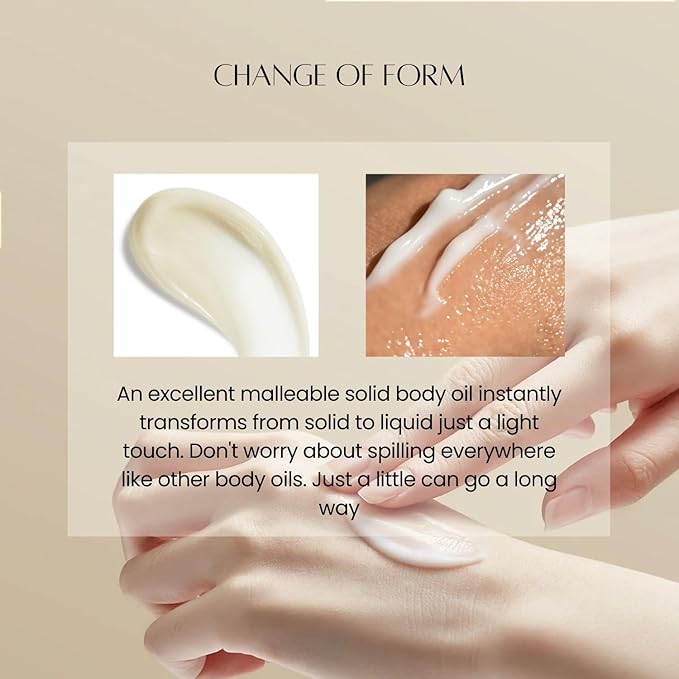 - Velvet Texture: Easy to absorb and non-sticky. The soft paste touches the skin and immediately melts into oil that moisturizes the skin and rejuvenates the body inside and out