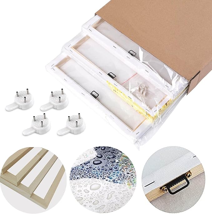 - each panel of zen decor canvas prints already stretched and framed, ready to hang. A strong hook is already fixed on each wooden inner frame for easy hanging out of box. edges are painted and each panel is wrapped by plastic bag with folded