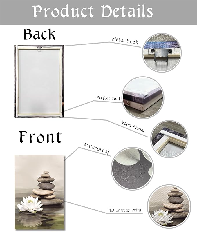 - Zen Lotus Canvas Wall Art Size: 24x36inch (60x90cm) - This stunning canvas print showcases the beauty of zen lotus flower,creating a soothing and tranquil atmosphere,perfect for relaxation and meditation sessions