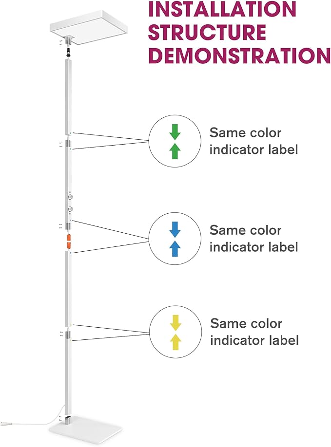 - Easy Installation: We understand your pursuit of convenience, this LED floor lamp is designed with ease of installation in mind. Simply follow the installation steps in the manual and easily connect each part to complete the installation. No professional skills required, easy to DIY your own lighting space