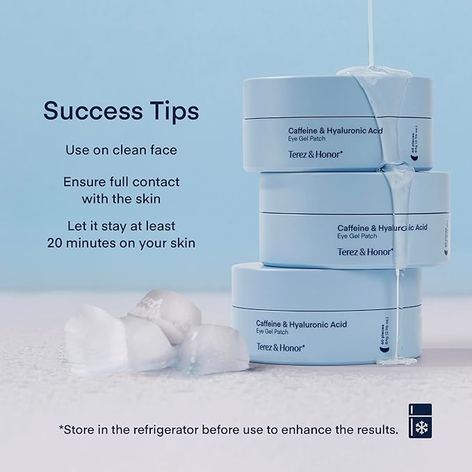 TEREZ & HONOR Under Eye Patches for Dark Circles - 60 Korean Hydrogel Masks for Puffiness, Bags with Caffeine, Hyaluronic Acid, Niacinamide - Undereye Brightening, Hydrating, Anti-Wrinkle & Cooling