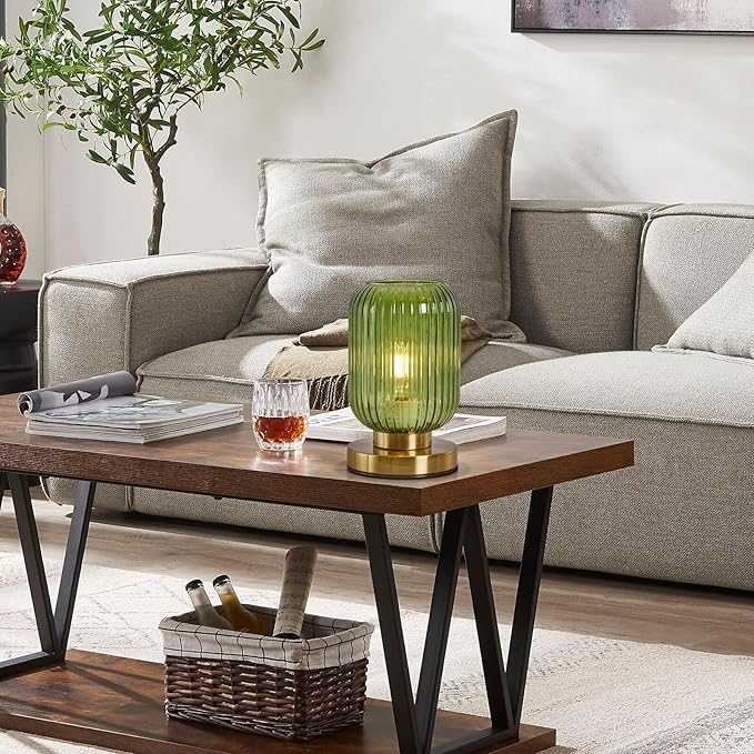 - Elegant Design: Mid Century Modern style table lamp. Green glass shades ,Ribbed glass is more attractive than ordinary glass, it will be a nice decoration for your bedside table or end table