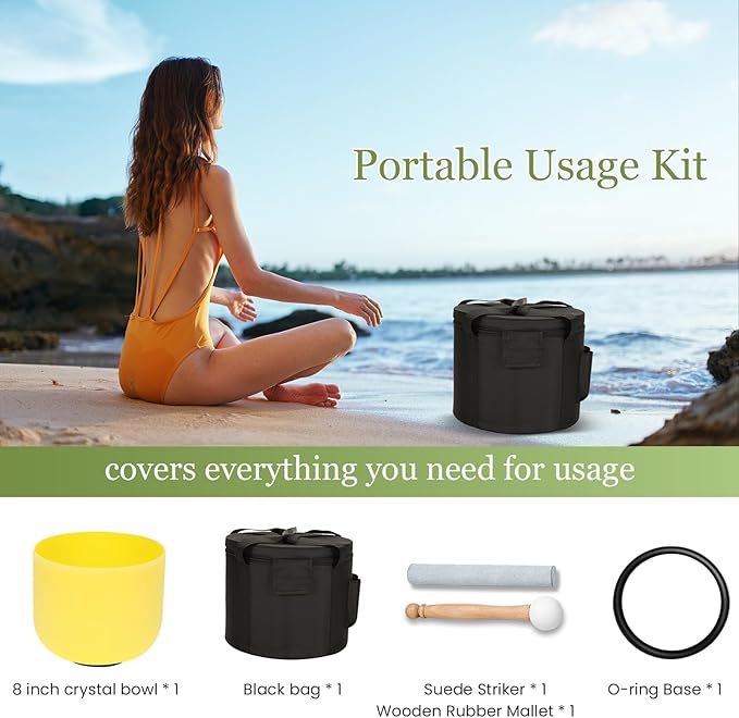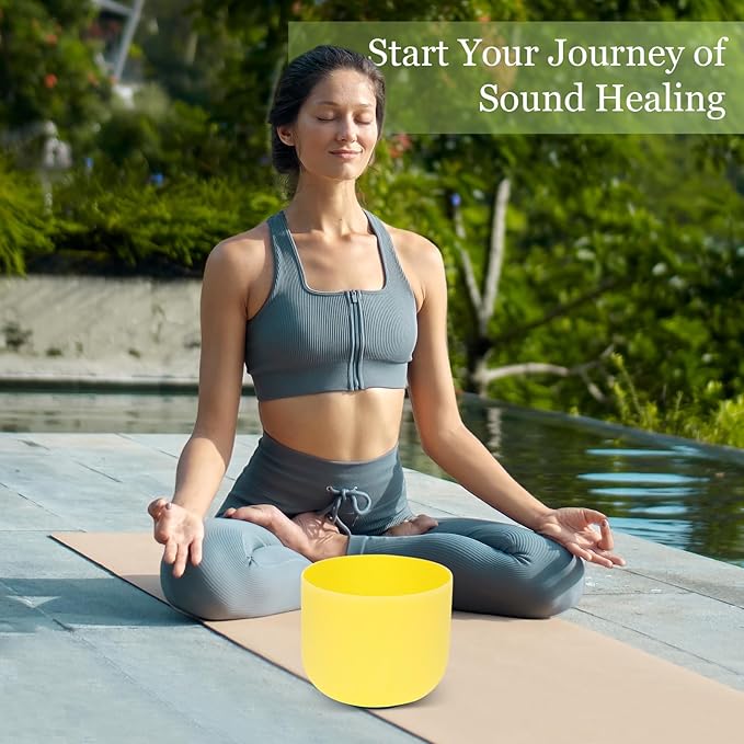- Included Items: This set includes 1 crystal singing bowl, this crystal sound bowl tuned to the 432Hz frequency known for meditation.The bowls cover a Solar Plexus Chakra-adapted tones suitable for a variety of sound healing and meditation practices. The set meditation accessories includes 1 suede mallet, 1 rubber mallet and 1 rubber o-ring.
