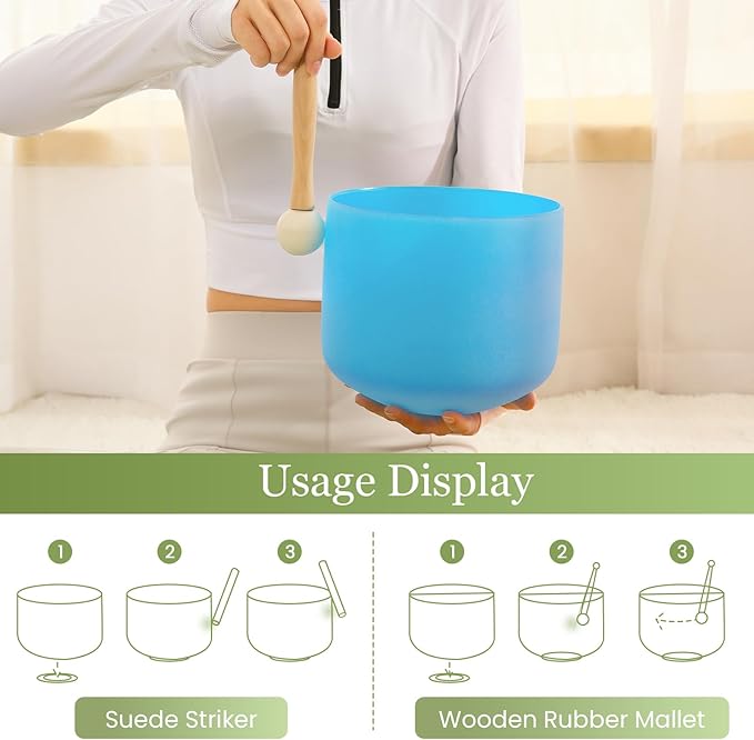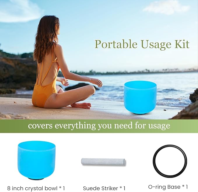 432HZ 8 Inchs Frosted Crystal Singing Bowl Set for Meditation Healing Yoga Chakra Quartz Crystal Sound Bowls with Heavy Duty Carry Case and Rubber Mallet,Suede Striker,O-rings