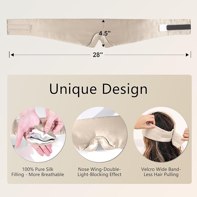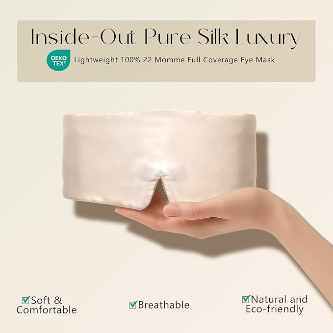 - ✅100% 22 Momme Grade 6A Luxury Construction: Crafted entirely from the highest-grade mulberry silk - including a silk-filled interior - this premium sleep mask delivers superior thickness, gloss, and durability. The full silk encasement ensures unmatched breathability, cloud-like comfort.