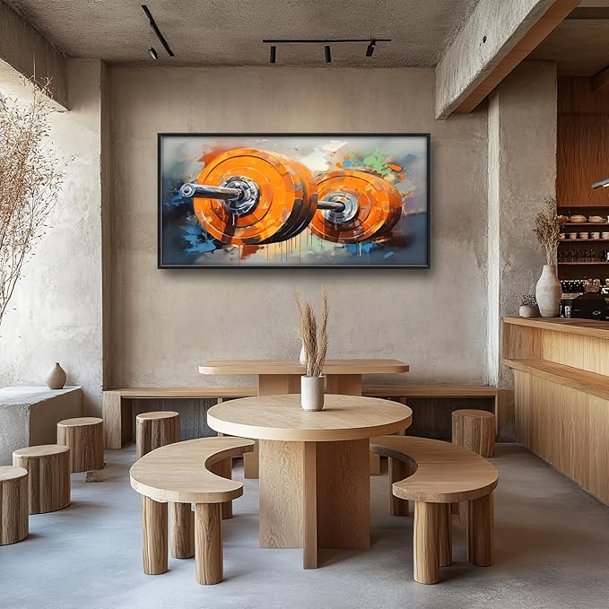 Fitness Framed Large Wall Art for Living Room Barbell Weightlifting Pictures Wall Decor Sports Bodybuilding Canvas Print Painting Home Decoration Artwork for Gym Bathroom 60x30 inch