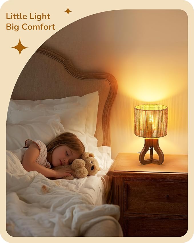 - [Stable Tripod Base] Built with a sturdy wooden tripod base, this end table lamp features a sturdy triangular structure that stays firmly in place; its compact size makes it ideal for bedside tables, small desks, or baby rooms