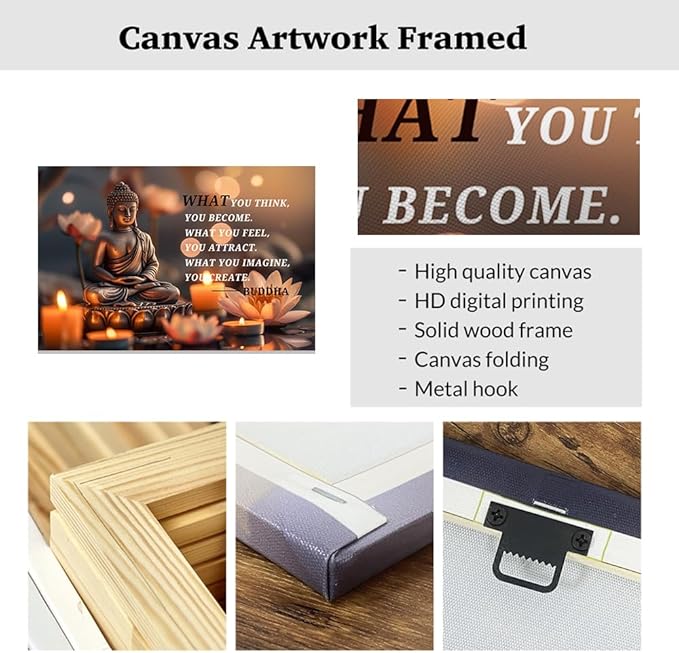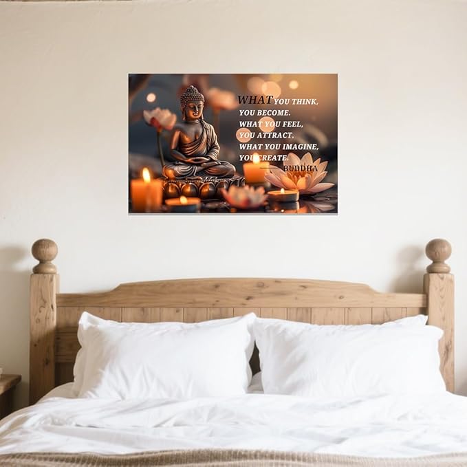 ZXHYWYM Buddhist Motivational Quotes Wall Art Canvas Prints Buddha Lotus Painting Zen Bathroom Pictures for Office Home Spa Yoga Room Wall Decor Framed (24" x 36")