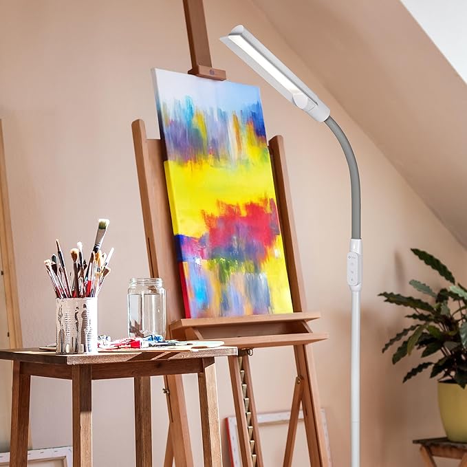 - CUSTOMIZABLE LIGHTING OPTIONS: The OttLite WingShade LED Floor Lamp offers three brightness levels and three color modes, including warm light, bright white, and ClearSun natural daylight. Easily adjust the lighting to create the perfect environment for reading, crafting, or working.