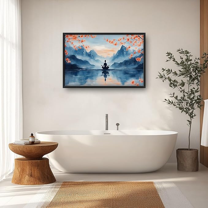 Zen Large Wall Art Buddha Lake Pictures Wall Decor Cherry Blossom Canvas Landscape Meditation Print Painting Modern Artwork Home Decoration for Yoga Spa Living Room Bathroom Bedroom Office Framed 36"x24"