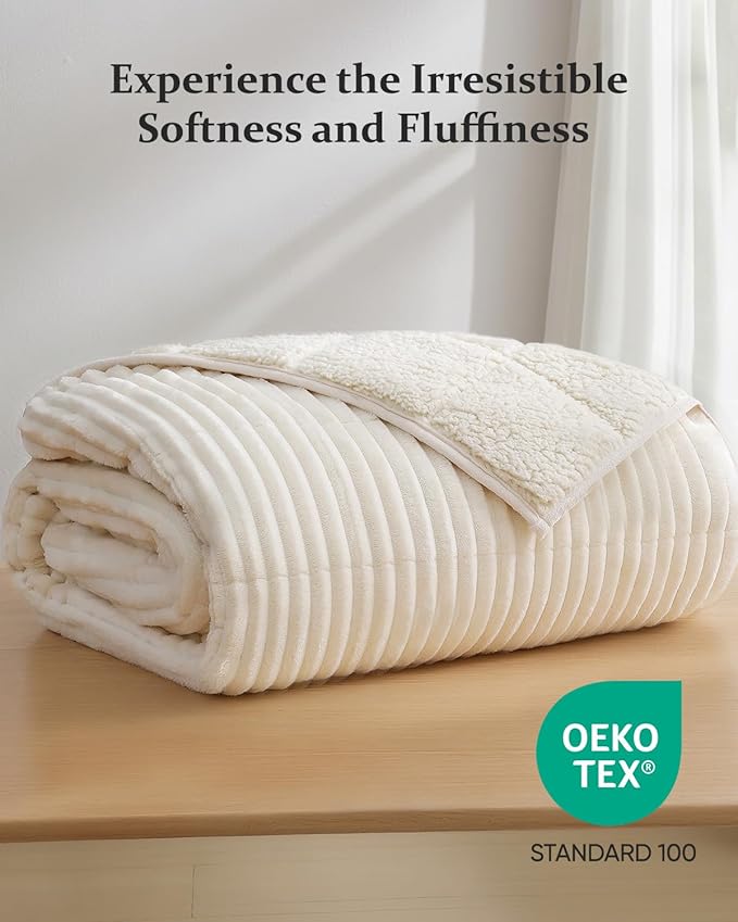- Premium Durable Materials: Crafted with high-quality 260 GSM fleece and 260 GSM sherpa, this heavy blanket resists pilling, shedding, and fading. It’s built to last, maintaining its plush feel and elegant look through countless uses.
