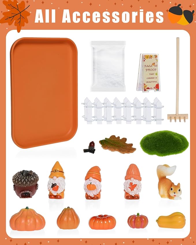 Thanksgiving Zen Garden Kit with Inspirational Sign Autumn Decor Decorative Trays Mini Fall Zen Garden Home Office Desk Decor Stress Relief Gift Includes All Accessories