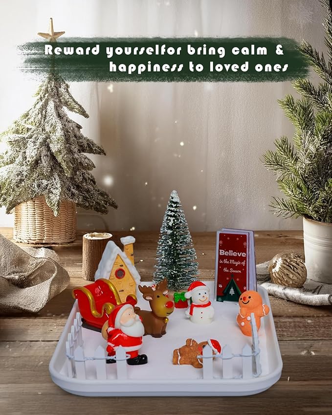 Christmas Zen Garden Kit with Inspirational Sign Christmas Decoration Trays Mini Zen Sand Garden Home Office Desk Decor Stress Relief Gift Includes All Accessories