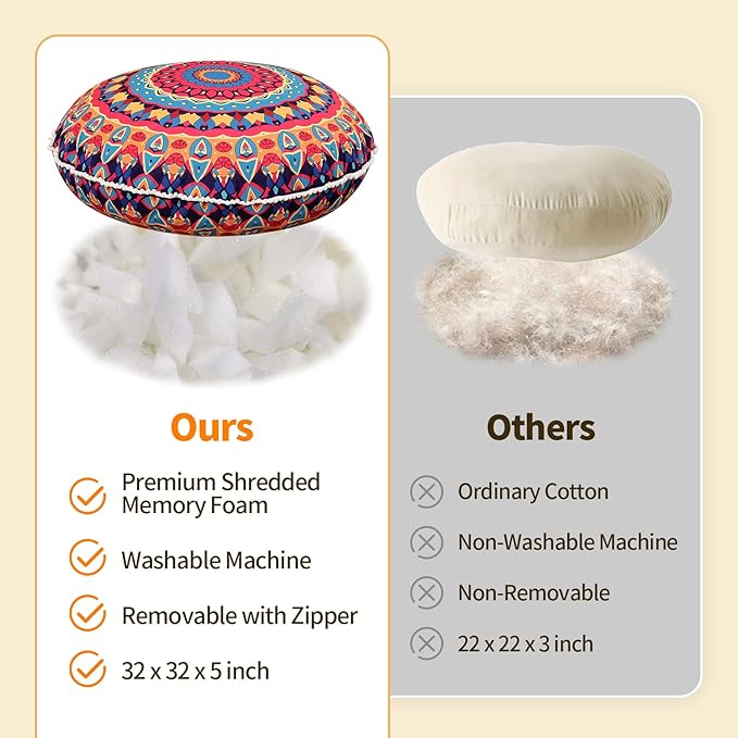 - Giant Floor Pillow: LOVMOC floor cushion is 32 inches in diameter, large enough for adults to sitting with crossed legs to meditate