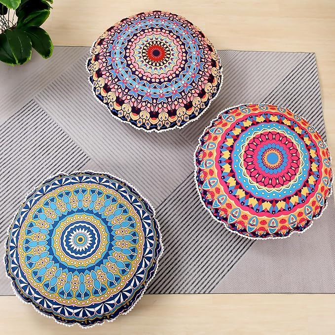- Bohemian Mandala Circle Design: LOVMOC round floor pillow adds a touch of tranquility to your room and create a serene oasis where you can read, chat, meditate and so on