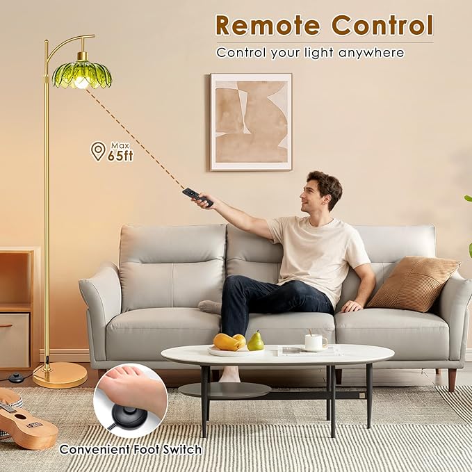- Dual Control via Remote or Foot switch: Our arc floor lamp adopts a combination remote control and foot switch, assuring convenience for daily life. Adjust brightness, change colors temperatures or set different modes to customize your ideal lighting solution easily with just one tap on the remote without leaving the sofa and warm bed (Remote Distance: Max 65ft, 2 AAA Batteries not Included)