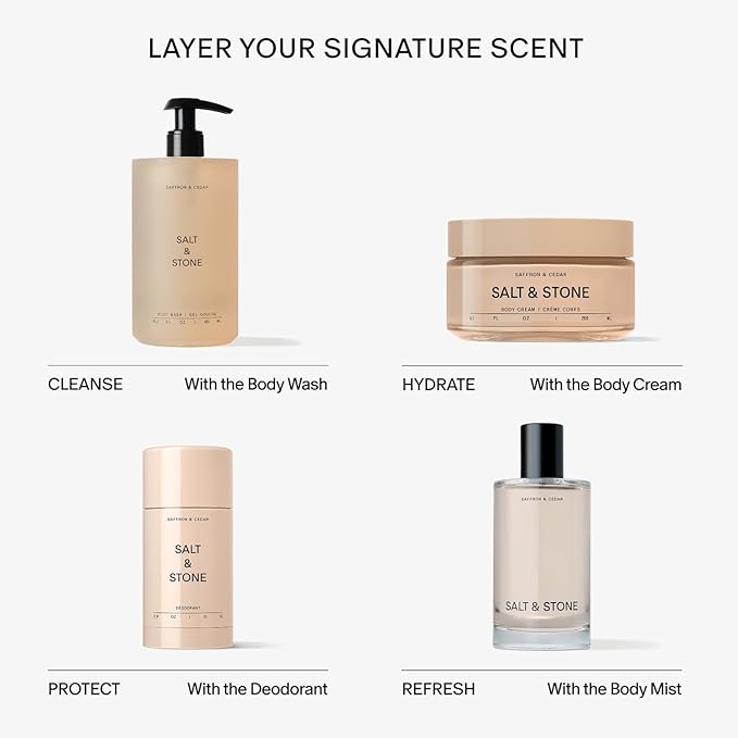 Salt & Stone Body Cream – Saffron & Cedar | Hydrating Formula with Seaweed Extracts, Spirulina & Squalane | Deep Hydration, Skin Barrier Support & Healthy Glow | for all Skin Types (6.7 fl oz)